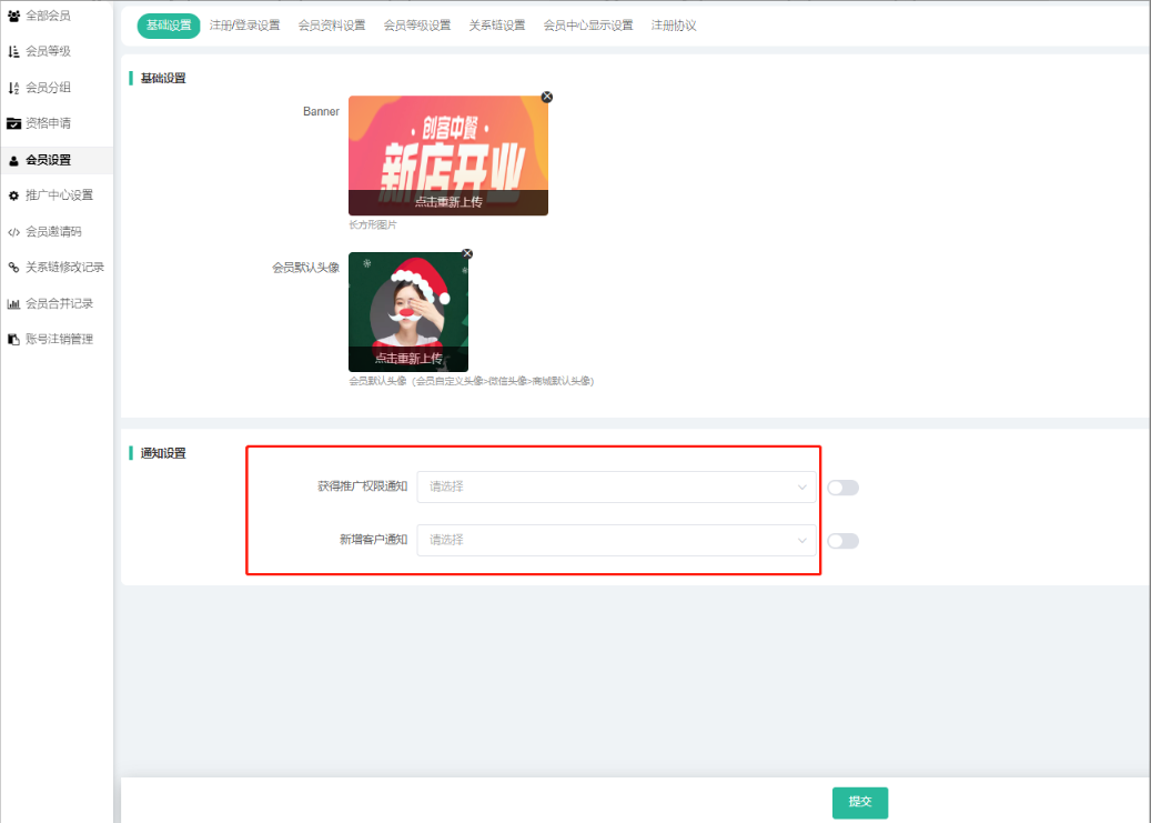 (前端推广申请的顶部图片可进行更换,在会员--会员设置--基础设置Banner进行更改)