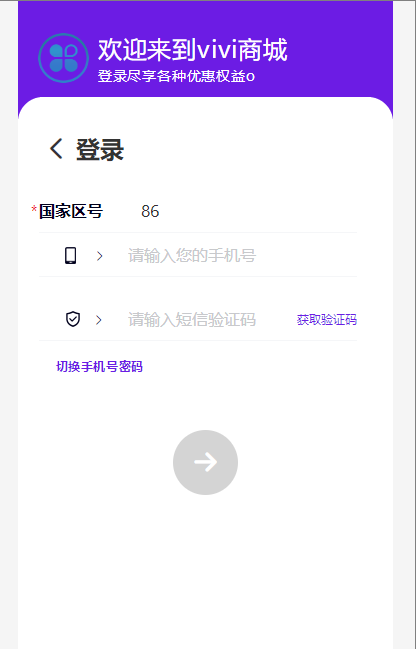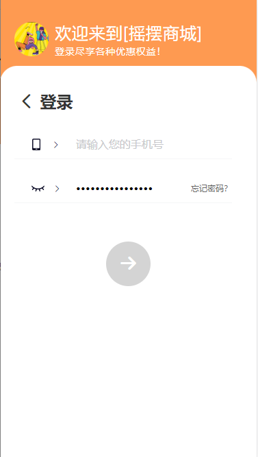 登录页模板一:默认页面,顶部颜色按照系统--商城设置的主题颜色走~