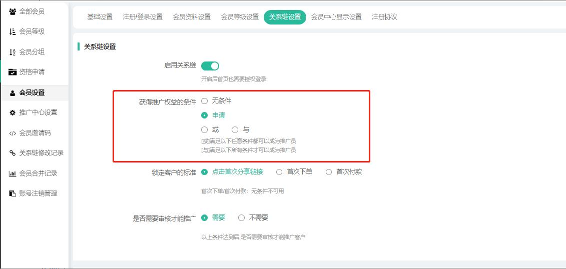 五、会员关系链设置