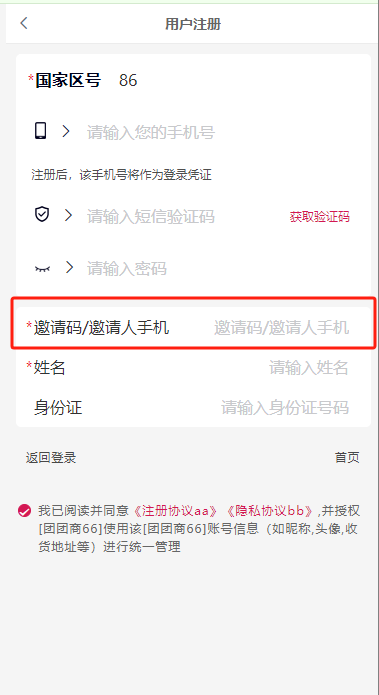 用户使用手机号注册、强制绑定手机号时勾选同意的注册协议。