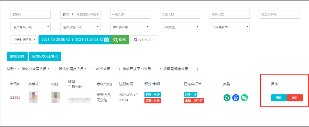 会员合并:
