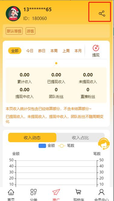 注意:系统默认当会员拥有推广下线的资格,即成为了分销商,等级为“默认等级”。