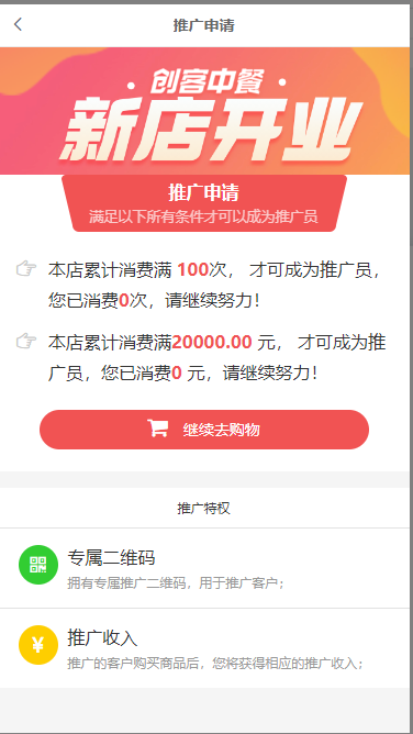 会员在商城推广中心 -- 推客 -- 推广申请页面顶部显示。