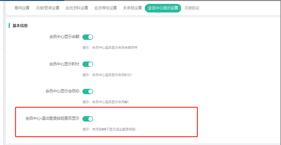 会员中心显示余额/积分/会员ID:开启就显示。仅针对系统默认页面,即不开启页面装修的情况下,才会隐藏.