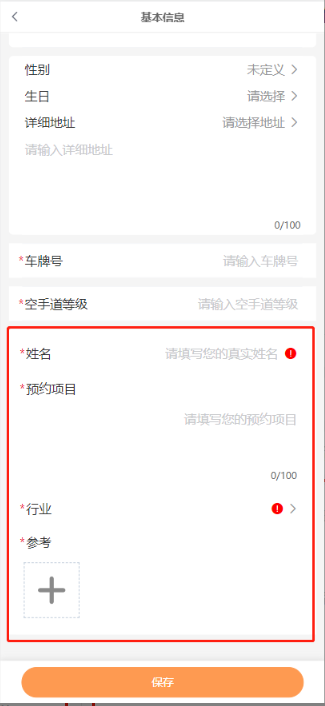 自定义字段显示名称:常应用于用户填写编号、会员卡号、身份证、车牌号等场景。