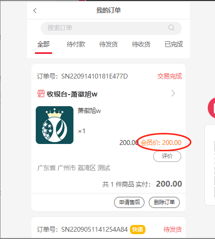 开启后,在前端商品选择规格页面,购物车页面,填写订单页面,我的订单页面,订单详情页面,存货订单页面(存货订单插件)显示会员价