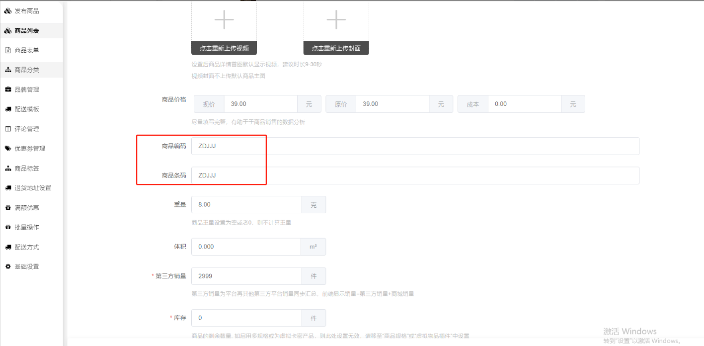 回复:检查一下商品编辑--基本信息、或者是否是多规格商品,规格里面的商品编码、商品条码是否都有填写完整