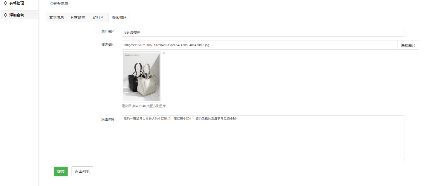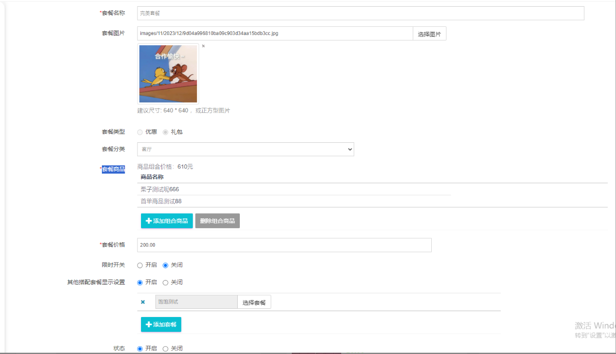 ②套餐图片:套餐主图(针对礼包套餐类型显示)