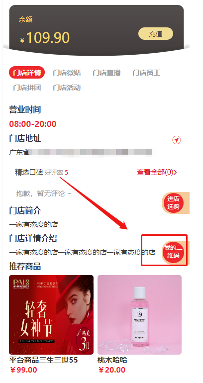 2、门店首页增加二维码显示:需要推广员才会显示,门店首页二维码