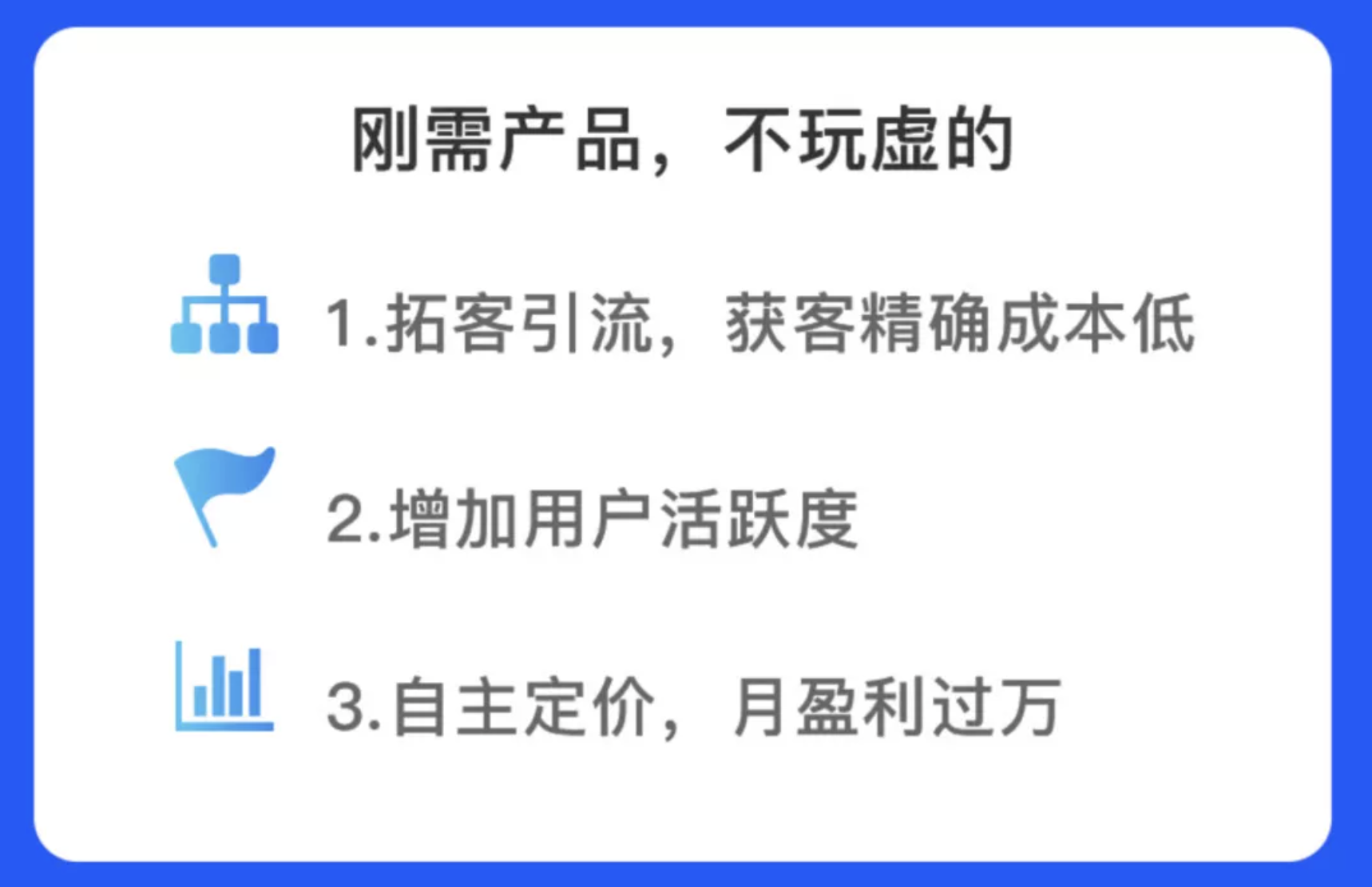 如果您有1万会员,假设50%的会员平均每人充值1次100元,那么您可获得毛利1万元!