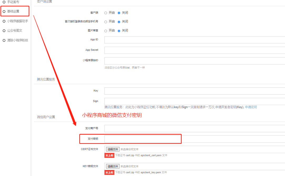 注意:若商城小程序的是跟公众号共用同主体的微信商户号,后台小程序的微信支付两证书也要重新上传.